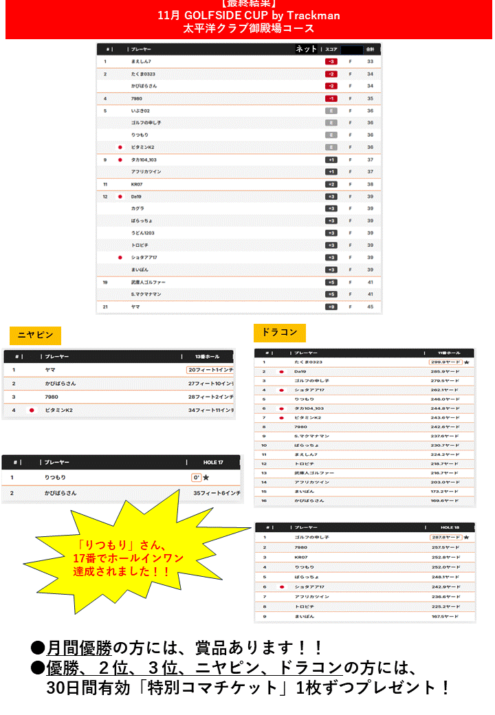 上位3位までまたはニヤピン、ドラコンに該当される方には