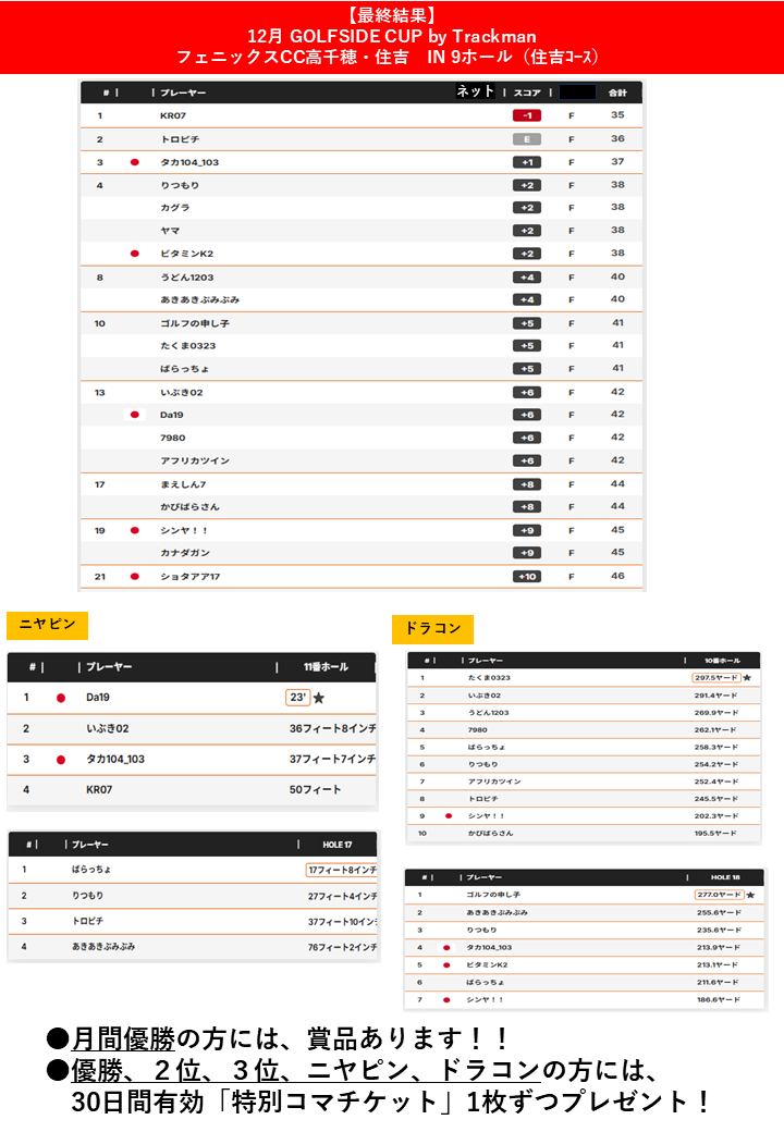 【最終結果】12月の「GOLFSIDEカップ」(トラックマン打席)