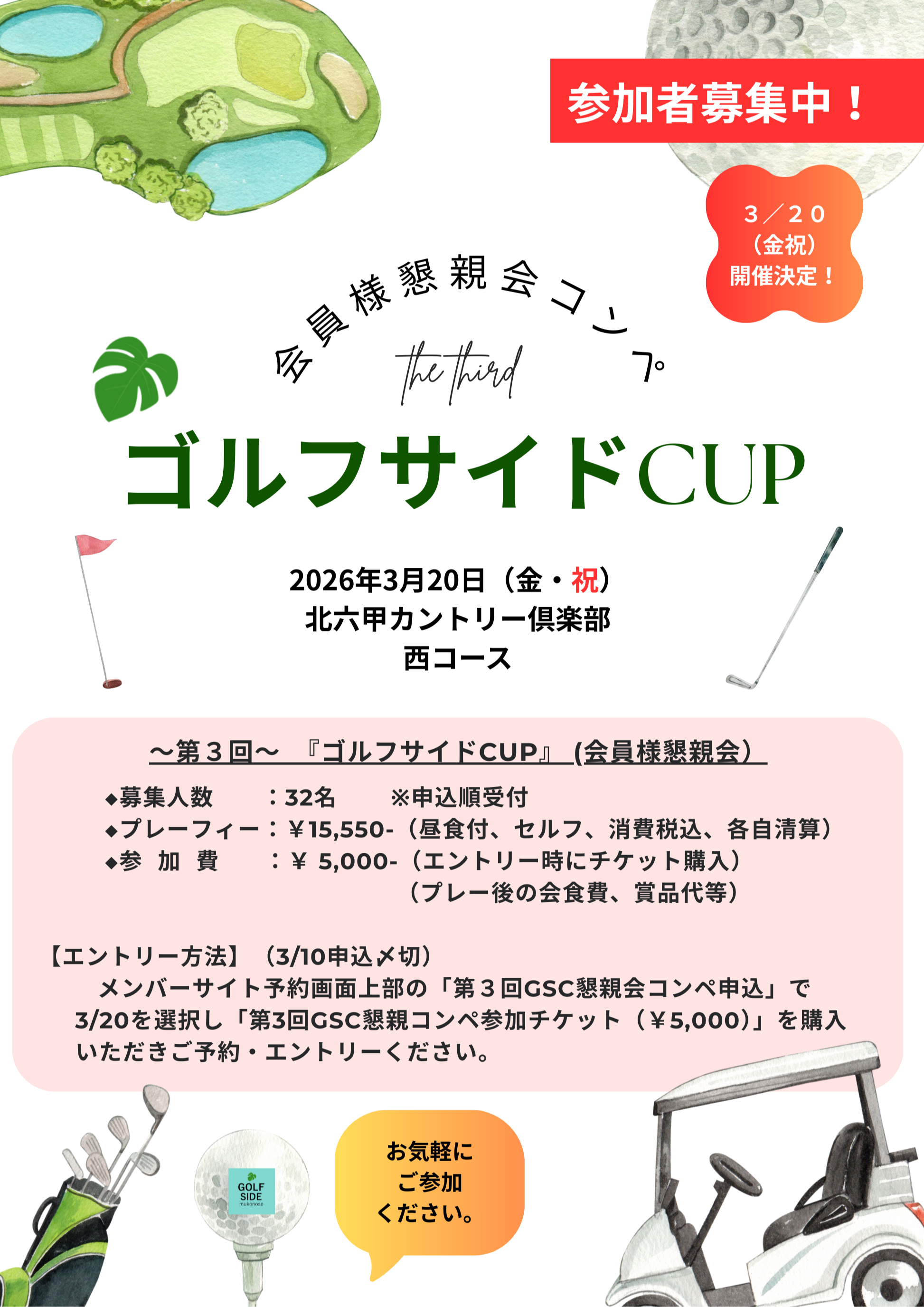 重要【エントリー開始】第3回ゴルフサイドCUP 3/20開催!